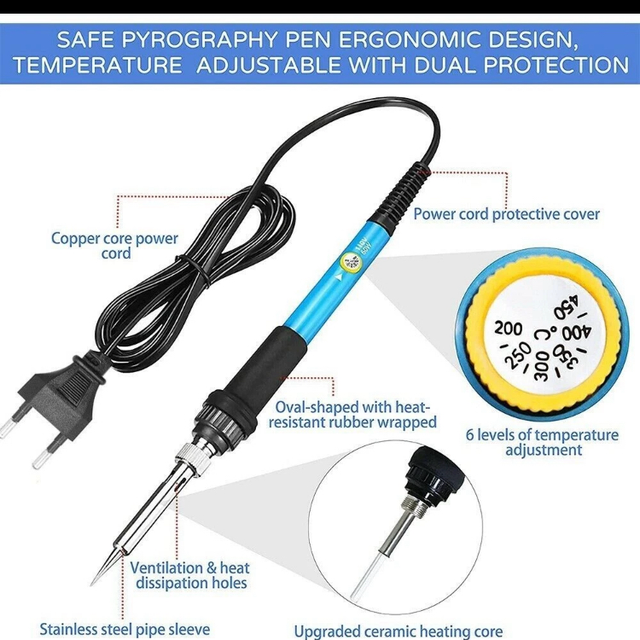 60W Kit Fer à Souder Electronique Soudage Température Réglable 200 à 450°C 220V