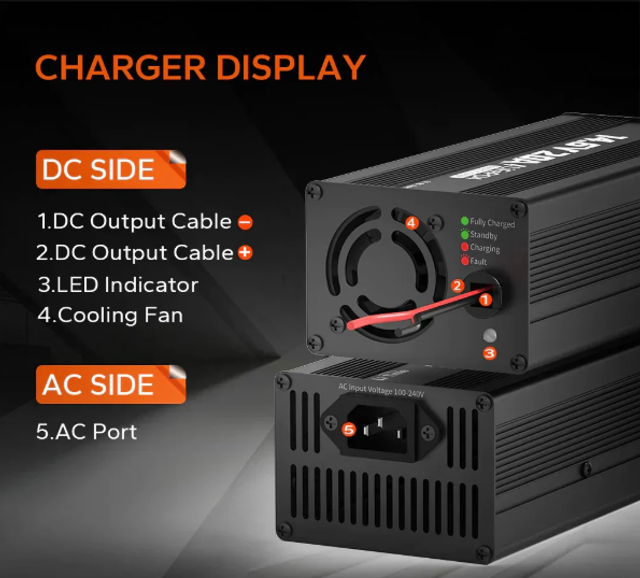 - Chargeur de batterie LiFePO4 12 V : Tension de sortie : 14,6 V CC | Courant de sortie : 20 A | Tension d'entrée : 100 V à 240 V CA ; 50 Hz à 60 Hz