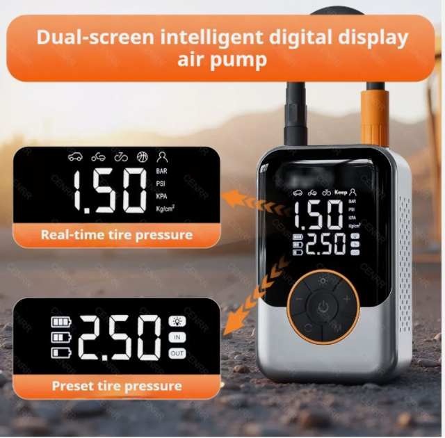 Compacte, puissante et multifonction, cette pompe à air est idéale pour gonfler pneus, ballons, lits gonflables et plus encore ! Elle combine performance, précision et portabilité dans un design moderne et facile à utiliser 🚗⚙️