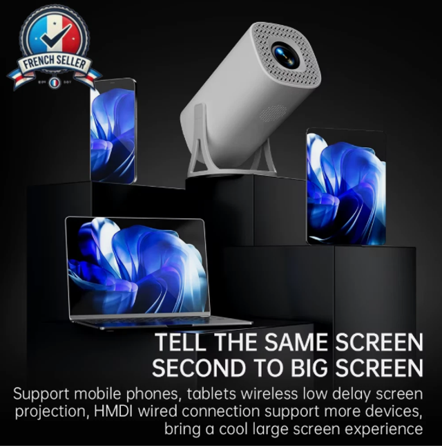 ✔ Projection grand écran – Compatible smartphones, tablettes, HDMI et USB