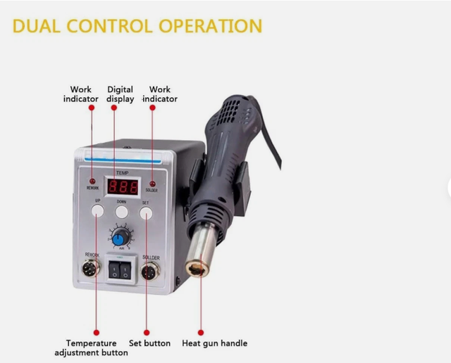 Chauffage rapide : le fer à souder et le pistolet thermique peuvent atteindre une température de 480°C en seulement 15 secondes, conçu pour le soudage et le dessoudage sans plomb