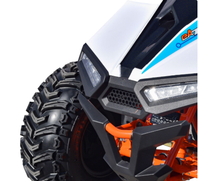 Tournez la clé, sélectionnez la marche avant ou arrière, et enfoncez l'accélérateur au pouce, tout comme sur les quads thermiques. Le frein à disque hydraulique à l'arrière assure un freinage puissant pour un arrêt rapide et sûr, tandis que les pneus tout-terrain robustes garantissent une conduite douce sur les terrains accidentés.